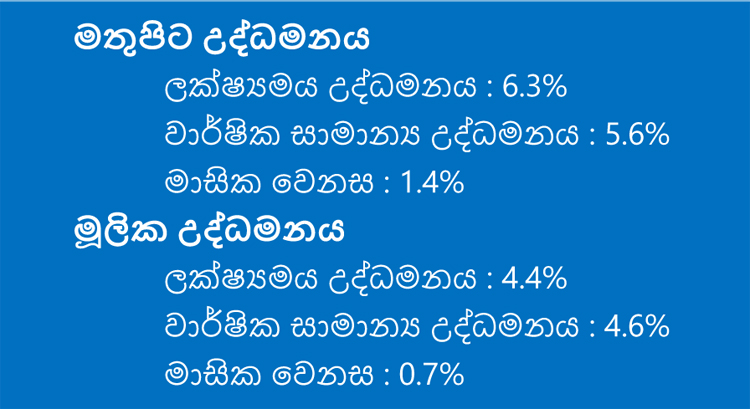 තවද, ලක්ෂ්යමය පදනම මත මූලික උද්ධමනය 2020 මැයි මාසයේ දී පැවති සියයට 3.7 හි සිට 2020 ජූනි මාසයේ දී සියයට 4.4 දක්වා ඉහළ ගිය අතර, වාර්ෂික සාමාන්ය මූලික උද්ධමනය 2020 මැයි මාසයේ දී පැවති සියයට 4.8හි සිට 2020 ජූනි මාසයේ දී සියයට 4.6 දක්වා පහළ ගියේය.