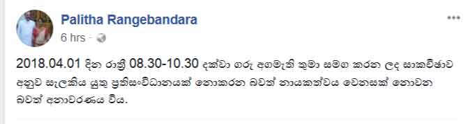 සිය නිල ෆේස්බුක් ගිණුමේ සටහනක් තබමින් රාජ්ය ඇමතිවරයා මෙම අදහස් පල කර තිබේ.