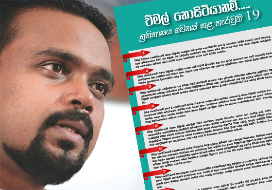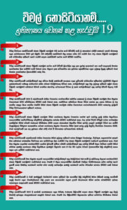 ” විමල් නොසිටියානම්… ඉතිහාසය වෙනස් කළ හැරවුම් 19 ” යනුවෙන් බෙදා හරින ලද අත්පත්රිකාවක් අප වෙත එවා ඇති අතර එය මෙසේ පළ කරන්නෙමු.