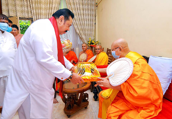 අග්රාමාත්ය මහින්ද රාජපක්ෂ මහතා නාරාහේන්පිට අභයාරාම විහාරස්ථානය වෙත ගොස් විහාරාධිපති බස්නාහිර පළාතේ ප්රධාන සංඝනායක පූජ්ය මුරුත්තෙට්ටුවේ ආනන්ද හිමි බැහැ දැක ආශිර්වාද ලබාගෙන තිබේ.