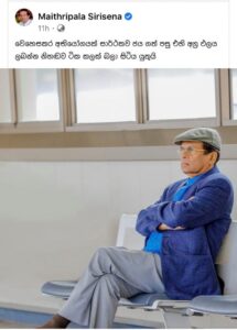 ‘වෙහෙසකර අභියෝගයක් සාර්ථකව ජය ගත් පසු එහි අග්ර ඵලය ලබන්න නිහඬව ටික කලක් බලා සිටිය යුතුයි’ යනුවෙන් හිටපු ජනාධිපති මෛත්රීපාල සිරිසේන මහතා සිය ෆේස්බුක් පිටුවේ සටහනක් තබමින් සදහන් කර තිබේ.