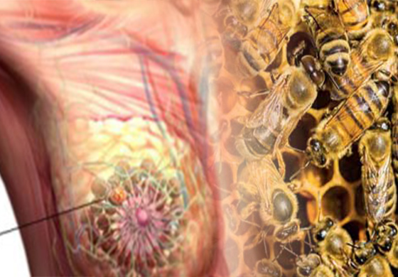 ප්රතිකාර කිරීමට අසීරු වර්ග දෙකකට අයත් පියයුරු පිළිකාවල ෙසෙල විනාශ කිරීමේ හැකියාවක් මී මැස්සන්ගේ විෂෙහි පවතින සංයෝගයකට පවතින බව ඔස්ටේ්රලියානු විද්යාඥයන් පිරිසක් විසින් රසායනාගාර ආශ්රිතව සිදු කරන ලද පර්යේෂණයකදී අනාවරණය කර ගෙන තිබේ.