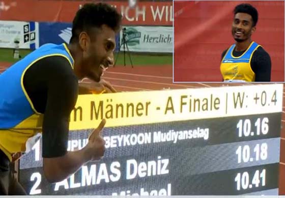 පිරිමි මීටර 100 ධාවන ඉසව්වේ දකුණු ආසියානු වාර්තාව සහ ශ්රී ලංකා වාර්තාව තමන් සතු කර ගැනීමට යුපුන් අබේකෝන් සමත් විය.