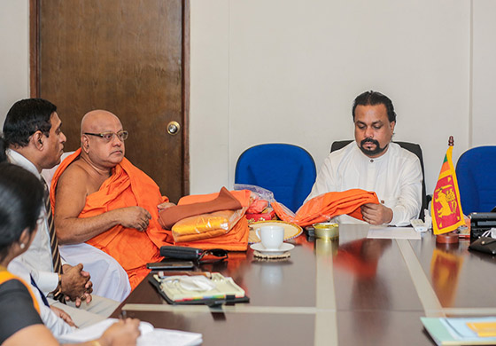 ඒ අනුව එම දේශීය සිවුරු අවශ්යතාව සපුරාලීමට අප රට තුළදීම සිවුරු නිර්මාණය කිරීමට ඇති හැකියාව පිළිබදව කර්මාන්ත අමාත්ය විමල් වීරවංශ මැතිතුමා දැනුවත් කරමින් ඒ වෙනුවෙන් අවශ්ය කටයුතු සම්පාදනය පිණිස පැමිණි කෝට්ටේ පාර්ශවයේ අනුනායක පුජ්ය මහාචාර්ය කොටපිටියේ රාහුල ස්වාමින් වහන්සේ ඒ පිළිබද දීර්ඝ පැහැදිලි කිරීමක් කරන ලදි.