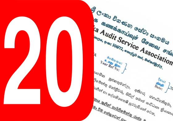 යෝජිත 20 වන ආණ්ඩුක්රම ව්යවස්ථා සංශෝධනය මගින් පාර්ලිමේන්තු රාජ්ය මූල්ය පාලන බලය සීමා වීම හා විගණකාධිපතිවරයාගේ විෂය පථය සීමා වීම හේතුවෙන් අහිතකර බලපෑමක් සිදු වන බව ශ්රී ලංකා විගණන සේවා සංගමය පවසයි.
