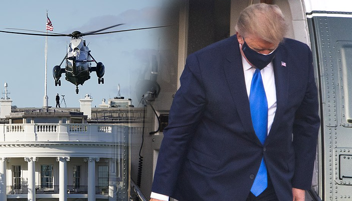 කෙසේ වුවත් නව කොරෝනා වෛරසය ආසාදනය වූ ජනාධිපති ට්රම්ප් මුඛ ආවරණයක් පැළද ධවල මන්දිරයේ සිට “මැරීන් වන්” හෙලිකොප්ටරය වෙත ඇවිද ගෙන යන අයුරු සහ ඈතින් රැස්ව සිටි මාධ්යවේදීන් වෙත හස්ත සංඥාවෙන් තමන් හොදින් බවට දැක්වෙන සංඥාවක් සිදුකළ අයුරු දක්නට ලැබුණා.