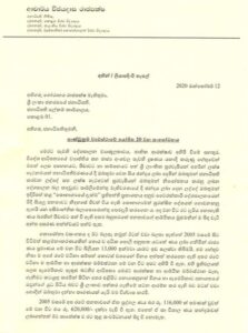 විජයදාස රාජපක්ෂ මහතා විසින් ජනාධිපතිවරයා වෙත යවන ලද ලිපිය පහත දැක්වේ.