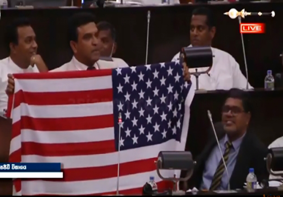 20 වන ආණ්ඩුක්රම ව්යවස්ථා සංශෝධන පනත් කෙටුම්පත පිලිබඳ විවාදයේදී සමගි ජනබලවේග පාර්ලිමේන්තු මන්ත්රී නලින් බණ්ඩාර මහතා ඇමරිකානු කොඩිය පාර්ලිමේන්තුවේදී ප්රදර්ශනය කරන ලදී.