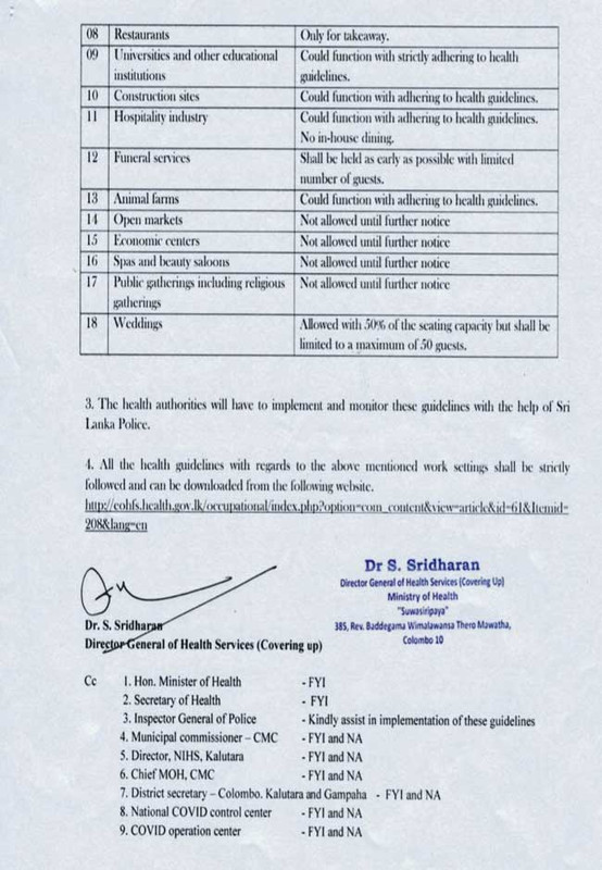 වැඩබලන සෞඛ්ය අධ්යක්ෂ ජනරාල් වෛද්ය එස්. ශ්රීධරන් මහතාගේ අත්සනින් නිකුත් කර ඇති ලිපියක ඒ බව සඳහන් වේ.