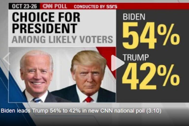 දීප ව්යාප්ත CNN සමීක්ෂණයේ ප්රතිඵල අනුව මේ වන විට ජෝ බයිඩන් – ට්රම්ප් ඡන්ද අනුපාතය බෙදී යන්නේ 54% – 42% වශයෙනි.