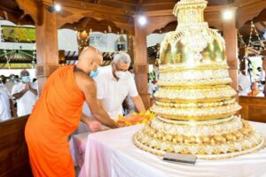 දහවල් දානමය පුණ්ය කර්මයෙන් අනතුරුව පඬු පෙවූ කඨින චීවරය අමාත්ය දයාසිරි ජයසේකර මහතා විසින් පෙරහරින් වැඩම කරවනු ලැබූ අතර මා විසින්එය සඟ සතු කොට පූජා කරන ලදී.