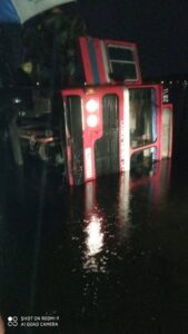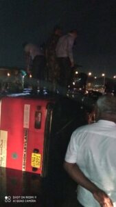 පාර්ලිමේන්තු සේවකයන් රැගත් ලංකා ගමනාගමන මණ්ඩලයට අයත් බස් රථයක් මෙලෙස පෙරළි ගොස් ඇති බව වාර්තා වනවා.