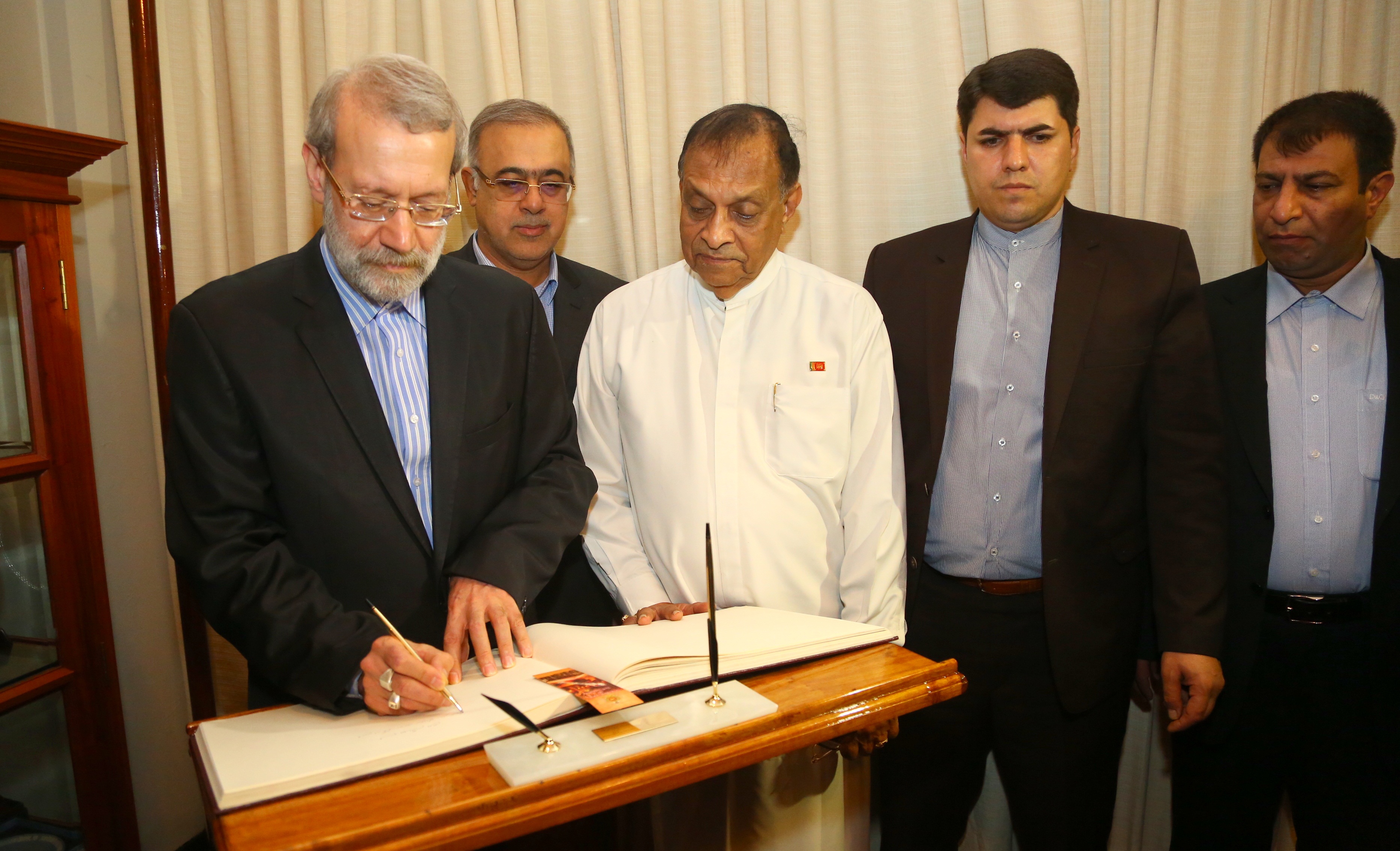 ශ්රි ලංකාවට පැමිණි ඉරාන පාර්ලිමේන්තුවේ කථානායකවරයා පුමුඛ විශේෂ පාර්ලිමේන්තු ධුත පිරිස කථානායක කරු ජයසුරිය මහතා සහ ශ්රී ලංකා ඉරාන පාර්ලිමේන්තු මිත්රත්ව සංගමයේ සාමාජික මන්ත්රීවරු සමඟ නිල හමුවීම අද දින (2018.04.19) පාර්ලිමේන්තුවේදී සිදු විය.