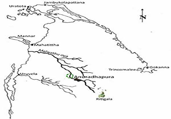 1. කදම්භ නදිය හෙවත් මල්වතු ඔය – උපතිස්ස ග්රාමය, අනුරාධ ග්රාමය.