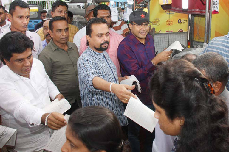 ‘ඔබේ ඉරණම තීරණය වන, මේ රට කැබැලි කරන කෙටුම්පත දැන් තිබෙනවා පාර්ලිමේන්තුවේ. ඒ කෙටුම්පත මේ රටේ මූලික නීතිය බවට පත් වීමට ඉඩ දුන්නොත් අහිමි වෙන්නේ ඔබේ දරුවාගේ අනාගතයයි. පළාත් සභාවලට ඉඩම්, පොලිස්, පරිපාලන ඇතුළු සියලු බලතල ලබා දෙන, මධ්යම ආණ්ඩුව මදය නැති ගෙඩියක් බවට පත්වන ව්යවස්ථාවක් තමයි නිර්මාණය කරමින් සිටින්නේ. ඒ නිසා ඊට එරෙහිව මුළු වෙර යොදා සටන් වැදීමට පෙරට එන්න’ කියා අපි දෑහිතකාමී සිංහල, දෙමළ, මුස්ලිම් සියලු ජනකොටස් වෙතින් ඉල්ලා සිටිනවා”