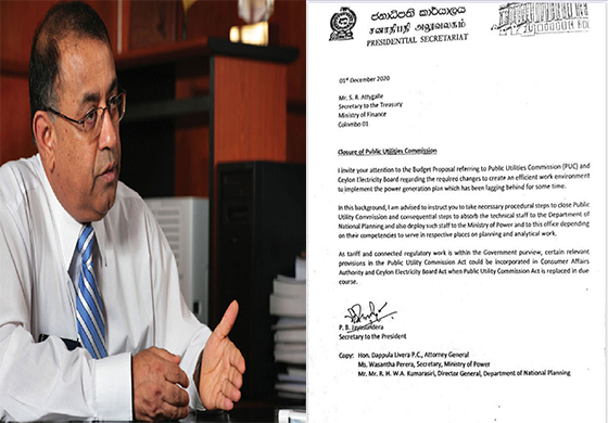 ජනාධිපති ලේකම් පුංචි බණ්ඩා ජයසුන්දර මහතා විසින්, මෙරට විදුලිබල ක්ෂේත්රයේ ප්රධානතම නියාමන ආයතනය වන මහජන උපයෝගීතා කොමිෂන් සභාව වසා දමන ලෙස මහා භාණ්ඩාගාරයේ ලේකම්වරයාට ලිඛිතව දැනුම් දී තිබේ.