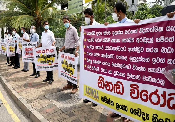 සමස්ත ලංකා වෛද්යය නිළධාරින්ගේ සංගමයේ වෛද්යවරුන් පිරිසක් ඊයේ(11 ) දිනයේ කොළඹ ලිප්ටන් වටරවුමේ විරෝධතාවක නිරතවෙමින් ඉල්ලා සිටියේ කොරෝනා වෛරසය මෙරටින් තුරන් කිරීමට අදාළව සැසුම්සහගත විද්යාත්මක වැඩපිලිවෙලක් සකස් කරන ලෙසයි.