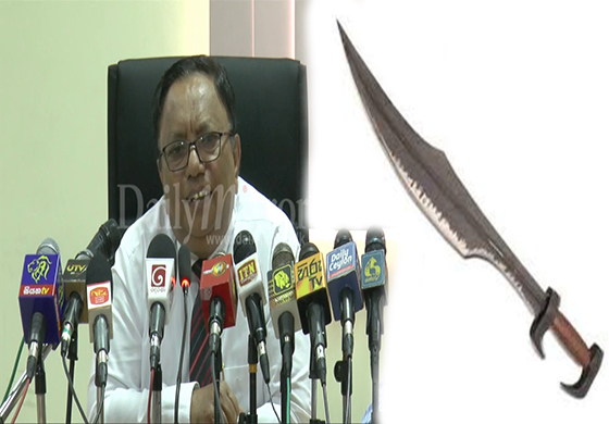 ඊට සිනහමුසු මුහුණින් පිළිතුරු දුන් හිටපු අමාත්යවරයා, “ස්වාමිනි, ඔය අහන්නේ කඩු ද?, පිහි ද? ඒ උපකරණ හඳුනාගැනීම සම්බන්ධයෙන් නම් මට ප්රශ්නයක් තියෙනවා,” යැයි පැවසීය.