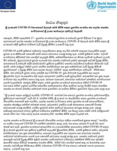 ‘කොවිඩ්-19’ වයිරසයෙන් සිදුව තිබෙන බලපෑම අඩු කිරීම සඳහා යුරෝපා සංගමය ශ්රී ලංකාවට යූරෝ මිලියන දෙකක මූල්ය ආධාරයක් කර තිබේ.