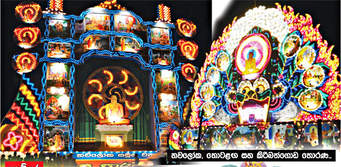 තොරණ තුළින් මහා භද්රකල්පය ජාතක කතා වස්තුව ප්රදර්ශනය කෙරුණා. එදා තොරණේ උස අඩි අසූපහකි. විදුලි බුබුළු 35,000 කින් තොරණ ආලෝකවත් කෙරුණා. එදා මේ තොරණේ විදුලි ආලෝක ශිල්පියා වුණේ ආරියදාස මහත්මයා.