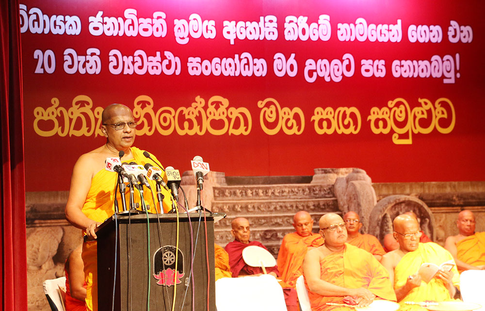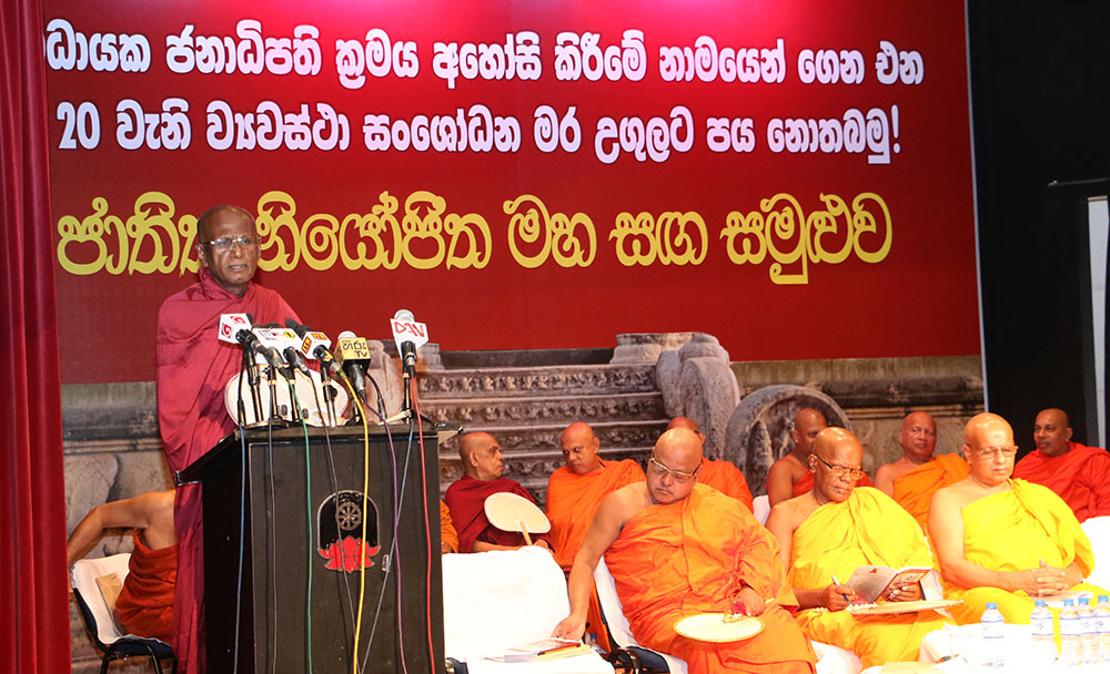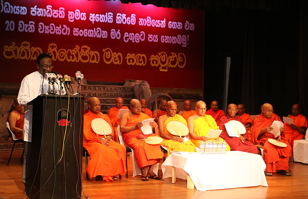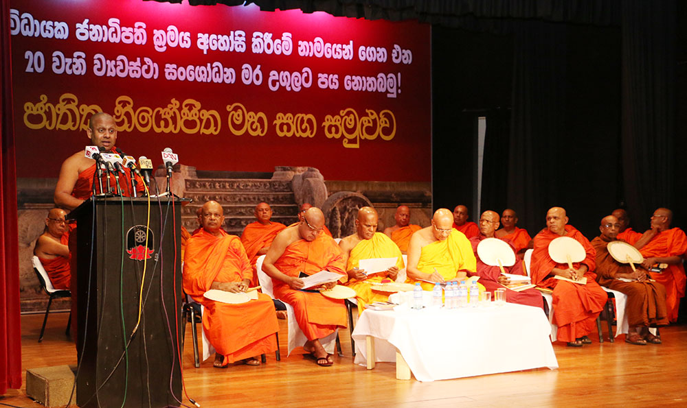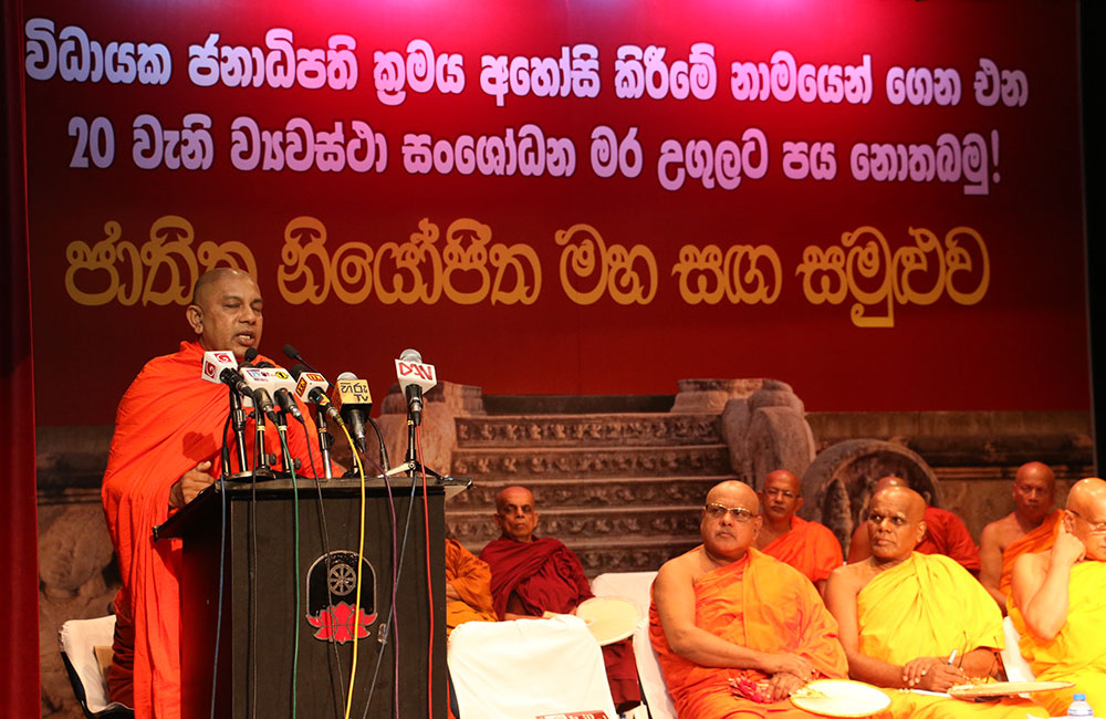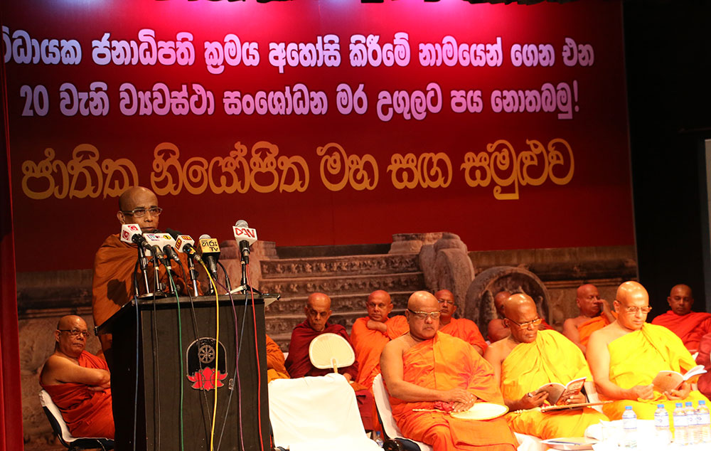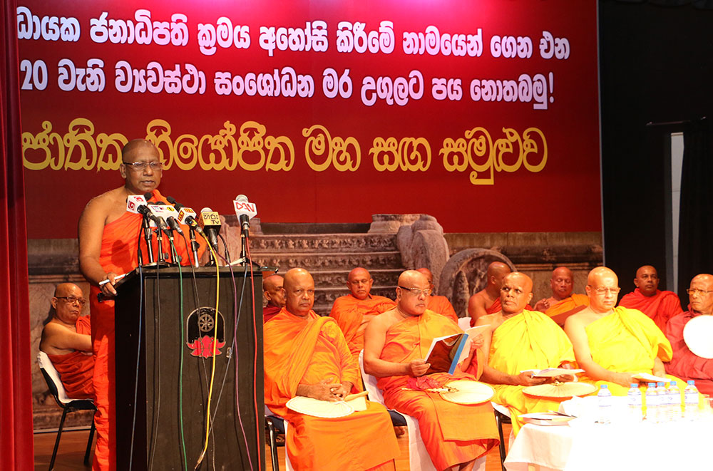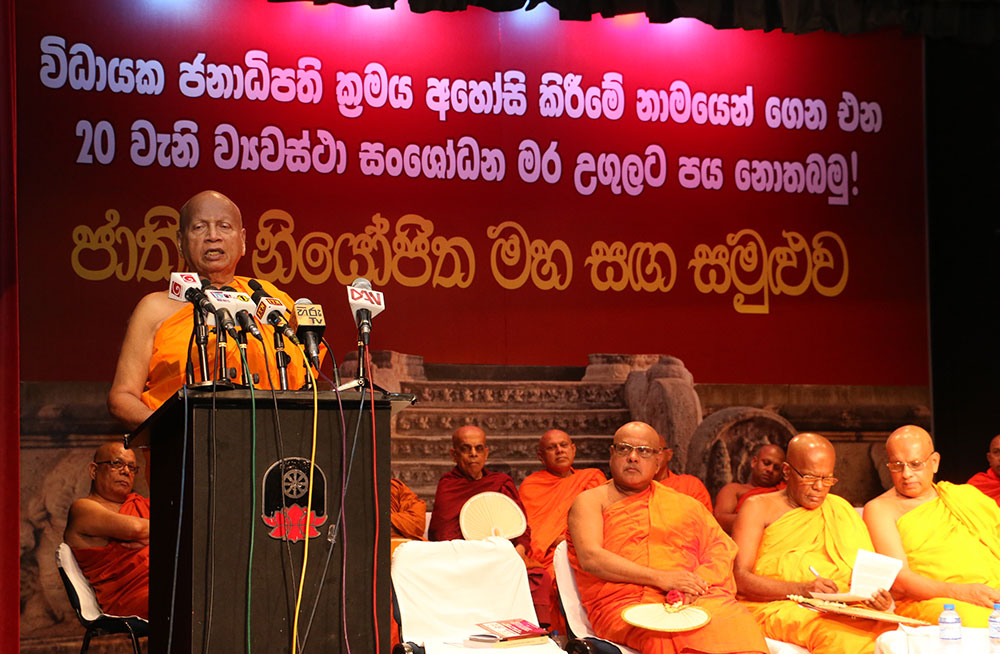 20 වන ආණ්ඩුක්රම ව්යවස්ථාව මඟින් බෙදුම්වාදී වුවමනාවන් ඉටුවන බැවින් එය පරාජය කිරීමට සියලුදෙනා එක් විය යුතු බව මහා සංඝරත්නය අවධාරණය කරයි.