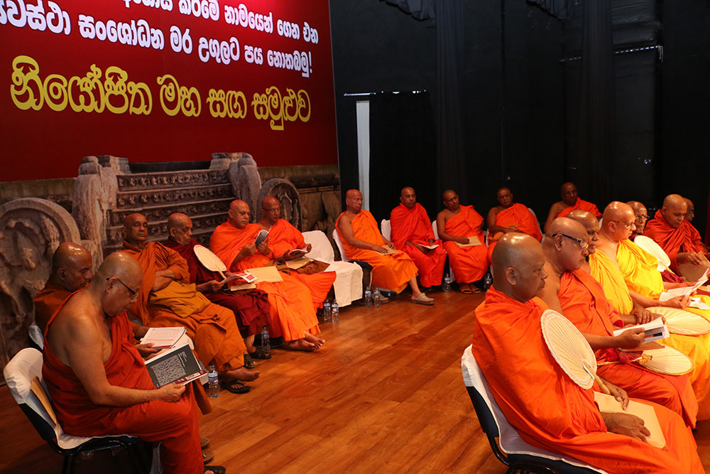 ජාතික සංවිධාන සම්මේලනය විසින් කළ ආරාධනයකට අනුව පැවති එම සම්මේලනය ශ්යාමෝපාලි වාංශික මහානිකායේ අස්ගිරි පාර්ශ්වයේ අනුනායක අතිපූජ්ය වෙඬරුවේ උපාලි, ශ්යාමෝපාලි වාංශික මහානිකායේ අස්ගිරි පාර්ශ්වයේ ප්රධාන ලේඛකාධිකාරී ආචාර්ය අතිපූජ්ය මැදගම ධම්මානන්ද, අමරපුර මහා නිකායේ මහානායක රාජකීය පණ්ඩිත ශාස්ත්රපති ගන්තුනේ අස්සජි, ශ්රී ලංකා රාමඤ්ඤ මහානිකායේ අනුනායක මහාචාර්ය කෝන්ගස්තැන්නේ ආනන්ද, කෝට්ටේ ශ්රී කල්යාණි සාමගි්ර මහා සංඝ සභාවේ අනුනායක හා ප්රධාන ලේඛකාධිකාරී මහාචාර්ය අතිපූජ්ය කොටපිටියේ රාහුල, ශ්යාමෝපාලි මහානිකායේ මල්වතු පාර්ශ්වයේ අතිපූජ්ය අනුනායක නියංගොඩ ධර්මකීර්ති ශ්රී සංඝරක්ත යන හිමිවරුන් නියෝජනය කරමින් කොළඹ මාලිගාකන්ද විෙද්යාaදය පරිවේණාධිපති අතිපූජ්ය බලංගොඩ සෝභිත හිමි යන මහානායක අනුනායක හිමිවරුන්ගේ ප්රධානත්වයෙන් පැවැත්විණි.