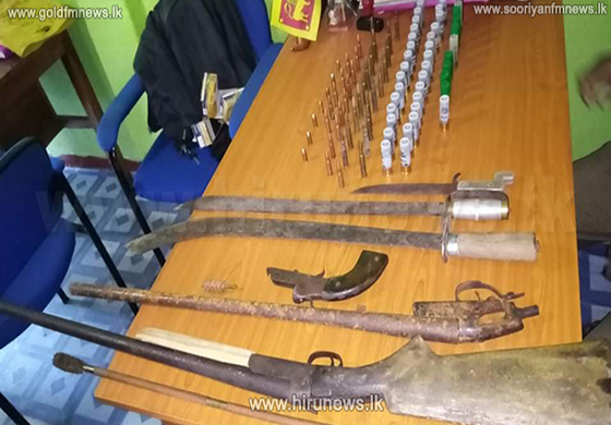 සැකකරුගේ නිවසේ සිදුකළ සෝදිසියකදී නිවසේ තැන තැන සඟවා තිබූ බෝර 12 වර්ගයේ ගිනි අවි 2ක්, මෙරට නිෂ්පාදිත ගල්කටස් වර්ගයේ ගිනි අවියක කොටස් කිහිපයක්, ගිනි අවිවල බැරලය සුද්ධ කිරීමට යොදා ගන්නා අගල් 32ක් දිග යකඩ කූරක්, කඩු දෙකක්, උල් පිහියක්, බෝර 12 වර්ගයේ ජීව උණ්ඩ 30ක්, ටී 56 වර්ගයේ ගිනිඅවි සඳහා භාවිත කරන ජීවඋණ්ඩ 15ක්, 303 වර්ගයේ රයිෆල් සඳහා භාවිත කරන ජීවඋණ්ඩ 19ක්, මිලි මීටර් 9 වර්ගයේ ගිනිඅවි සඳහා භාවිත කරන ජීවඋණ්ඩ 7ක් හා බෝර 12 වර්ගයේ ගිනිඅවි සඳහා යොදන හිස් පතොරම් කොපු 12ක් තංගල්ල කොට්ඨාස දූෂණ මර්දන ඒකකයේ නිලධාරීන් විසින් අත්අඩංගුවට ගෙන තිබේ.