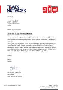මෙහි දැක්වෙන්නේ එම ලිපියයි.