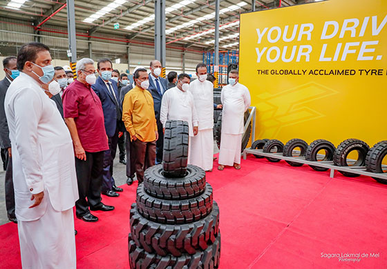 සමරු ඵලකය නිරාවරණය කළ ජනාධිපතිතුමා මැති ඇමතිවරුන් සමග ටයර් නිෂ්පාදනායතනයේ සමස්ත ක්රියාවලිය නිරීක්ෂණය කළේය.