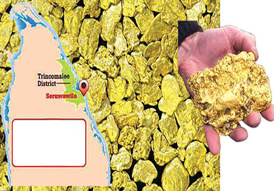 ත්රිකුණාමලය දිස්ත්රික්කයේ සේරුවාවිල ප්රදේශයේ වර්ග කිලෝ මීටර පනස්හතරක් පුරා පැතිරී පවත්නා රත්තරං සහිත දැවැන්ත නිධියක් පිළිබඳ තොරතුරු හෙළිකරනු ලැබුවේ භූ විද්යා හා පතල් කාර්යාංශයය. මෙම නිධිය තුළ රන් වලට අමතරව තඹ හා යකඩද තිබෙන බව මේවන විට සිදුකර තිබෙන පරීක්ෂණ මගින් තහවුරුව තිබේ. මෙම ස්ථානයේ රන් නිධියක් තිබෙන බවට මෙයට පෙර අවස්ථා කිහිපයකදී තොරතුරු අනාවරණය වුවත් ඒ පිළිබඳ වැඩිදුර සොයා බැලීම් කිරීමට කිසිවෙකුත් උනන්දු නොවීම ජාතියේ අවාසනාවකි. ලෝක වෙළෙඳ පොළේ ඉහළම ඉල්ලූමක් ඇති අතිශයින් දුර්ලභ රන් අපේ රටින් මතුවීම ණය බරින් මිරිකී සිටින අපට ඉන් ගොඩ ඒම පිණිස දෙවියන් දුන් තිළිණයක් යැයි පැවසීම වරදක් නොවන්නේ මේ අපට එවැනි සම්පතක අවශ්යතාව තදින්ම දැනෙනා අවස්ථාවක් බැවිනි. ඇමරිකාව මගින් යෝජනා කර තිබෙන එම්. සී. සී. ආර්ථික කොරිඩෝවට මෙම රන් නිධියට අමතරව කළු රන් ලෙස ප්රකට පුල්මුඬේ ඉල්මනයිට් නිධියද අයත්ව තිබිණි.