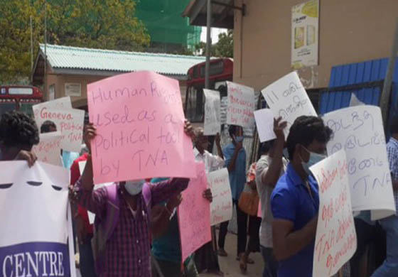 එමෙන්ම ජිනීවා මානව හිමිකම් සැසියේදී දෙමළ ජාතික සන්ධානය විසින් ශ්රීලංකා යුධ හමුදාවට එරෙහිව සිදු කරනු ලබන චෝදනාවන් සියල්ලක්ම සාධාරණ නොවන බැවින් එය දෙමළ ජනතාවටම සිදු කරන හානියක් බවටද දෙමළ ජනතාවගේ සැබෑ ගැටලු, සැබෑ ප්රශ්න වෙනුවෙන් පෙනී නොසිටින බවටද විරෝධතාකරුවන් වැඩි දුරටත් පැවසූහ.