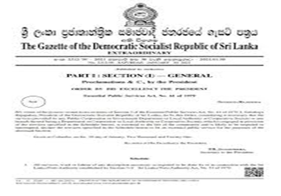 නැගෙනහිර පර්යන්තය සම්බන්ධයෙන් මතුව ඇති ගැටළුකාරී තත්ත්වය හේතුවෙන්, මේ වන විට, වරාය වෘත්තීය සමිති අකුරට වැඩ කිරීමේ වෘත්තීය ක්රියාමාර්ගයකට එළඹ සිටින වාතාවරණයක් යටතේ ජනාධිපති ගෝඨාභය රාජපක්ෂ මහතා විසින්, වරාය අත්යවශ්ය සේවාවක් බවට පත් කරමින් අති විශේෂ ගැසට් පත්රයක් ප්රකාශයට පත් කර තිබේ.