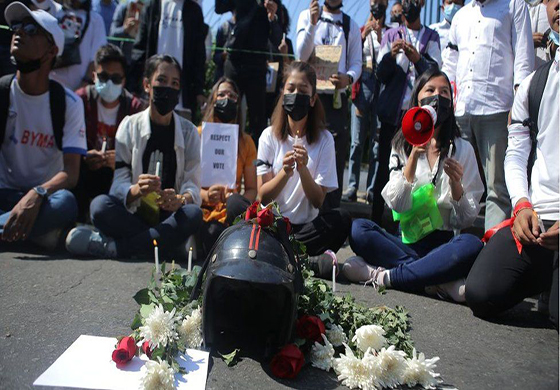 මියන්මාරයේ දිගින් දිගටම පැවැත්වෙන හමුදා පාලනයට එරෙහි ජනතා විරෝධතා අතර පෙරේදා (09) දින 19 හැවිරිදි පොලිස් වෙඩි ප්රහාරයක් එල්ලවූ Mya Thwe Thwe Khaing නම් වූ තරුණියගේ තත්වය බරපතළ බව වාර්තා වන අතර ඇයට ඉක්මන් සුවය පතා එරට තරුණ, තරුණියන් විසින් දිගින් දිගටම අධිෂ්ඨාන පූජා පවත්වමින් සිටින බව ද වාර්තාවේ. මෙම වෙඩි ප්රහාරය තරුණියගේ හිස පිටුපසට වැදී තිබුණ අතර තරුණියගේ ජීවිතය පිළිබඳව බලාපොරොත්තු තබා ගත නොහැකි යැයි වෛද්යවරුන් පවසා ඇති බව විදෙස් මාධ්ය වාර්තා කරයි.