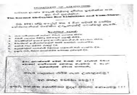 සමාජ මාධ්යජාල අතර සංසරණය වෙමින් තිබියදී මා හට පසුගියදා දකින්නට ලැබුනේ අපූරු දැන්වීමකි. කෘෂිකර්ම දෙපාර්තමේන්තුව විසින් එය මුද්රණය කර ප්රසිද්ධකර තිබුණේ 1941 අවුරුද්දේ මුල් භාගයේදීය. දැන්වීමක් කිව්වාට ඇත්තටම එය ජනතාවට කළ ආරාධනාවක් විය. කෘෂිකර්ම ප්රදර්ශනයක් නරඹන්නට පේරාදෙණිය රාජකීය උද්භිද උද්යානයට පැමිණෙන ලෙසට කළ ඇරයුමකි ඒ.