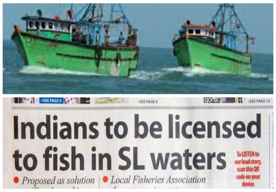 ඉන්දියානු ධීවර යාත්රා නීති විරෝධී ලෙස ශ්රී ලංකා මුහුදු සීමාවට ඇතුළු වී මසුන් මැරීම සහ ඉන්දියානු ට්රෝලර් යාත්රා අප ගැඹුරු මුහුදේ සියලු මත්ස්ය සම්පත් සූරාකමින් කරන ධීවර ක්රියාකාරකම් යන ගැටළු දෙකකට අප මුහුණ දී සිටින බවත් එයට විසඳුමක් ලෙස ඉන්දියානු ධීවර යාත්රාවන්ට බළපත්ර ලබා දී ඔවුනට පමණක් මසුන් මැරීමට අවසර දීමේ ක්රමයක් ශ්රී ලංකාව විසින් යෝජනා කර ඇති බවත් ධීවර කටයුතු ඇමති ඩග්ලස් දේවානන්ද මහතා වැඩිදුරටත් ප්රකාශ කර ඇති බව “ද මෝර්නින්ග්” පුවත්පත වාර්තා කරයි.
