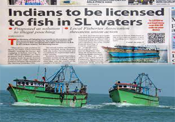 ඇමරිකාව විසින් ඉන්දියාව, ජපානය, ඔස්ට්රේලියාව ඇතුලත් සිව් පාර්ශවික හවුලක් ඇතිකර ගනිමින් නිදහස් හා විවෘත ඉන්දු-පැසිෆික් ප්රවේශයක් පිඹුරුපත් සාදද්දී අපගේ උතුරු මුහුදු සාගර කළාපයේ ඉන්දීය ධීවරයින්ට මසුන් ඇල්ලීම සඳහා මුදල් ගෙවා කොන්දේසි සහිත බළපත්ර ලබාගැනීමේ ක්රමවේදයක් සහිත යෝජනාවක් ඉන්දීය රජයට ඉදිරිපත් කළ බව බී.බී.සී දෙමළ සේවය අමතමින් ධීවර අමාත්ය ඩග්ලස් දේවානන්ද මහතා පවසා තිබේ.