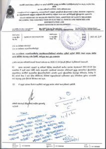 වනජීවී රැකවරණය, අලිවැට හා අගල් ඉදිකිරීම ඇතුළු ආරක්ෂිත වැඩපිළිවෙලවල් හා කැලෑ නැවත වගා කිරීම හා වන සම්පත් සංවර්ධන රාජ්ය අමාත්යාංශ ලේකම් මේජර් ජනරාල් පාලිත ප්රනාන්දු වන සංරක්ෂක ජනරාල් වෙත යොමුකළ ලිපියකින් මේ බව දැක්වෙයි.