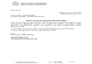 මේ අතර 25 වැනි අගහරුවාදා රාත්රී 11සිට 28 වැනි සිකුරාදා අලුයම 4.00 දක්වා යලිත් සංචරණ සීමා පැනවීමට තීරණය කර තිබේ.