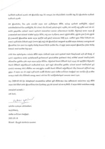 මේ සම්බන්දව ජනාධිපති ගෝඨාභය රාජපක්ෂ වෙත යැවු ලිපිය පහත පරිධි වේ.