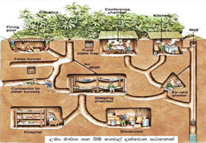 මේවා නැරඹීමෙන් පසුව අවසානයේදී සංචාරකයන් තවත් ශාලාවක් වෙතට කැඳවාගෙන යනු ලබයි. මෙහි දිගු මේස සහ වාඩිවීමට දිගු බංකු තබා ඇත. මේසය මත ඇත්තේ සංචාරකයන් වෙනුවෙන් තබා ඇති ආහාරයි. කුඩු කරන ලද රටකජු, එයට මිශ්රකරන ලද ලූණු කුඩු සහ ගම්මිරිස් කුඩු සමග කෑමට තම්බන ලද මක්ඳ්ෙක්ඳාක්කා. ඊට පසු බීමට ග්රීන් ටී කෝප්පයක් ලැබේ. මේවා වියට්නාම් හමුදා භටයන් යුද්ධය පවතින අවස්ථාවේදී ගත් අධිපෝෂණ ගුණයෙන් යුතු ආහාරයි.