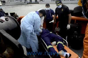 නාවික හමුදා ප්රකාශක කපිතාන් ඉන්දික සිල්වා මහතා ප්රකාශ කරන්නේ ඊයේ (මැයි 25දා* උදෑසන නෞකාවේ පිපිරීමක් සිදුවූ අතර ඉන් කාර්ය මණ්ඩලයේ සාමාජිකයන් දෙදෙනකු තුවාල ලද බවය. ඊයේ උදෑසන කළ මෙහෙයුමකින් කාර්ය මණ්ඩලයේ 25 දෙනාම