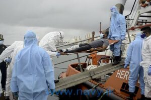 මේ අතර නෞකාවේ පවතින ගින්න පාලනය කිරීමට සහාය වීම සඳහා ඉන්දීය සහන කණ්ඩායමක් ද යොමුකර ඇත. ඒ සඳහා ටග් යාත්රාවක් සහ ඉන්දීය වෙරළ ආරක්ෂක යාත්රා දෙකක් ද යොමුකර තිබේ.