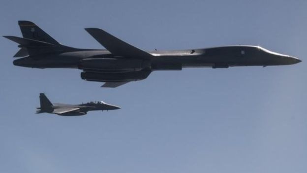 ඇමෙරිකතාව ඊයේ රාත්රියේ දකුණු කොරියාව සමග එක්ව එම අර්දද්වීපයේ ඒකාබද්ධ ගුවන් අභ්යාසයක නිරත විය. දකුණු කොරියානු ගුවන් හමුදාවට අයත් ප්රහාරක යානා දෙකක් සමග ඇමෙරිකානු බෝම්බ හෙලීමේ යුදෝපායික යානා දෙකක්ද මෙම අභ්යාසයට යොදාගෙන තිබිණි.