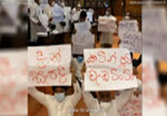 ඉන්ධන සහ අනිකුත් භාණ්ඩ මිල ඉහළ ඉහළ දැමීම සම්බන්ධයෙන් රජයට විරෝධය පළ කරමින් සමගි ජනබලවේගයේ මන්ත්රීවරුන් සටන් පාඨ සහිත පෝස්ටර් ඔසවමින් උද්ඝෝෂණයක නිරතව සිටියි.
