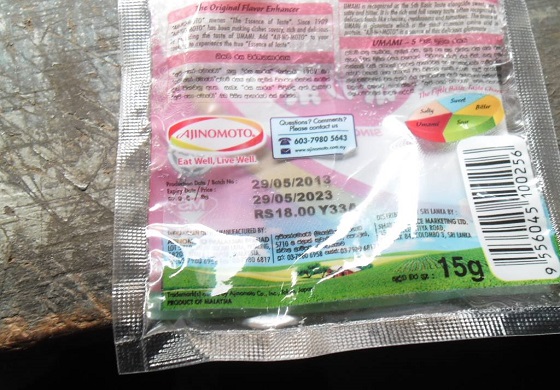 –ගී සුප් කැට, —ර් උම්බලකඩ පවුඩර්,ක්ෂණික නූඩ්ල්ස්, ක්ෂණික කොත්තු සහ කුඩා දරුවාගේ සිට වැඩිහිටි මහල්ලා දක්වා එක එක ප්රමාණයේ බඩ ගින්නට ගිල දමනවායැයි රූපවාහිනි දැන්වීම් මගින් පවසන බිස්කට් වගර් වලට ඇබ්බැහි කරවීමට යොදා ගන්නේ මොනෝ සෝඩියම් ග්ලුටමේට් හෙවත් අජිනෝ මොටෝ බව තහවුරු වී තිබේ.
