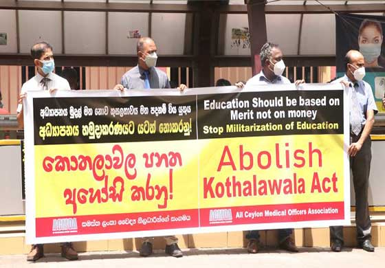 අධ්යාපනය පෞද්ගලීකරණය කිරීම සහ මිලිටරිකරණය කිරීම සදහා ගෙන එනු ලබන කොතලාවල පනත හකුලා ගන්නා ලෙස ඉල්ලා සමස්ත ලංකා වෛද්ය නිලධාරීන්ගේ සංගමයේ වෛද්යවරු විසින් කොළඹ ජාතික රෝහල ඉදිරිපිටදී විරෝධතාවක නිරත වෙන ලදි.