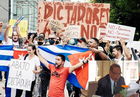 හයිටියේ දේශපාලනය එසේ සිදුවෙද්දී කැරිබියානු කලාපයේම හයිටියට කිලෝ මීටර් 80 ක් පමණ ඈතින් පිහිටි සමාජවාදී කියුබානු රාජ්යයේද දේශපාලන කැළඹීම් පසුගිය සතියේදී ඇති වූවා. එහිදී කියුබානු ජනයා මහ පාරට බැස අත්යාවශ්යය භාන්ඩ නොමැති බව පවසමින් උද්ඝෝෂණ කරණ වීඩියෝ දර්ශන මෙන්ම ඡායාරූප ජාත්යයන්තර මාධ්යයන්වල දිගින් දිගටම ප්රචාරය වනු දක්නට ලැබුණා. අධිරාජ්යය විරෝධී සමාජවාදී අදහස් ඇති ලෝකයේ හතර දිග් භාගයේ ජීවත් වන ජනයාගේ කඳවුරේ පහන් ටැඹ ලෙස ගෞරවාදරයට පත්වූ කියුබාව තුළ කියුබානු සමාජවාදී රාජ්යයට එරෙහිව එරට ජනයා වීදි බැස තිබීම සිත් රිදුම් දෙන කාරණයක් මෙන්ම විශ්වාස කළ නොහැකි කාරණයක් බවට පත්වුනා.