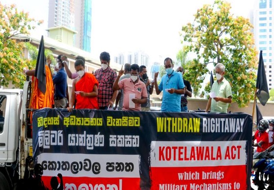 “නිදහස් අධ්යානය වැනසීමට මිලිටරි යාන්ත්රණ සකසන කොතලාවල පනත හකුලාගනු!” මැයෙන් සඳහන් විරෝධතා පාඨ සහිත බැනර් ප්රදර්ශනය කරමින්, කළු කොඩි සහිතව පවත්වන ලද මෙම රථ පෙලපාලිය නුගේගොඩින් ආරම්භ කර ලිප්ටන් වටරවුම දක්වා පැමිණි අතර එහිදී විරෝධතා රැලියක්ද පැවැත්විණි.