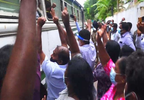 ඊයේ(05) පස්වරුවේ ඔවුන් කොටුව මහෙස්ත්රාත් අධිකරණය වෙත ඉදිරිපත් කිරිමෙන් පසු කොටුව මහේස්ත්රාත්වරයා විසින් ඔවුන් ඇප මත නිදහස් කිරීමේ නියෝගය ලබා දී ඇති බව කියවේ.