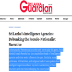 ඊයේ(23) දිනයේදී පාර්ලිමේන්තු මන්ත්රී විමල් වීරවංශ මහතා විසින් අමෙරිකානු ඔත්තු සේවයේ නිලධාරින් පිරිසක් ශ්රී ලංකාවේ බුද්ධි අංශ නිලධාරින් රහසිගතව හමුවීම සම්බන්ධයෙන් පාර්ලිමේන්තුවේදී කළ හෙළිදරව්වට පිළිතුරු වශයෙන් ලංකා ගාඩියන් නම් වෙබ් අඩවියේ නම සඳහන් නොකළ නිලධාරියෙකු විසින් ලි...